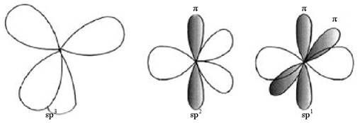 圖2 碳原子的sp3、sp2和 sp1雜化結(jié)構(gòu)