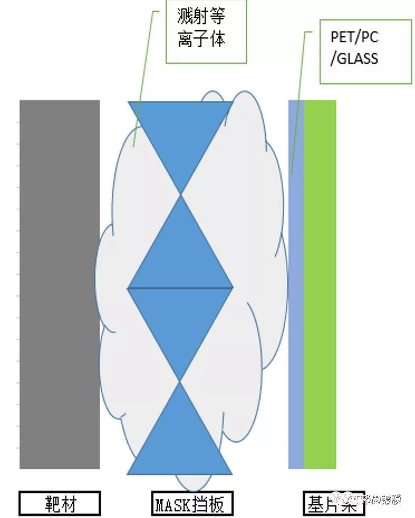 圖 靶材和工件的中間增加一個擋板(MASK)示意圖
