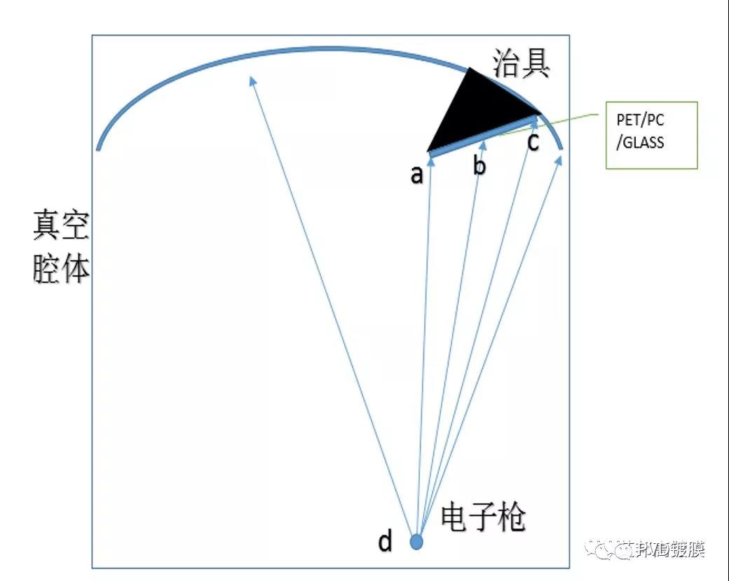 a、b、c三點的成膜角度∠A> ∠B> ∠C,成膜區(qū)與蒸發(fā)源的距離da