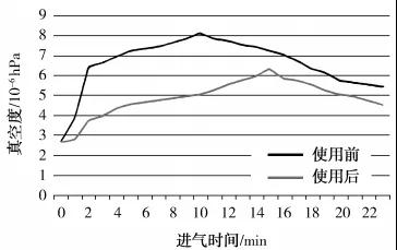 隔離閥應(yīng)用效果比較分析:(1)收、放卷室進(jìn)氣時(shí)真空度變化,隔離閥使用前后,收、放卷室進(jìn)氣時(shí),濺射鍍膜室的真空度變化見圖3。