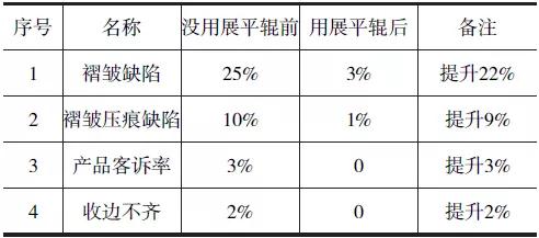 表1 使用平整度在線控制裝置前后良率及其他參數(shù)對比
