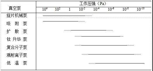 表1-2 幾種常用真空泵的工作壓強(qiáng)范圍