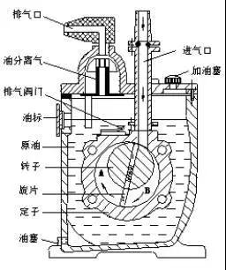 由于泵工作時(shí),定子、轉(zhuǎn)子全部浸在了油中,在每一吸氣、排氣周期中將會(huì)有少量的油進(jìn)入到容器內(nèi)部,因此要求機(jī)械泵油要具有較低的飽和蒸氣壓及一定的潤(rùn)滑性、粘度和較高的穩(wěn)定性。