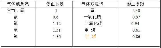 表1-3 常見(jiàn)氣體和蒸汽的修正系數(shù)