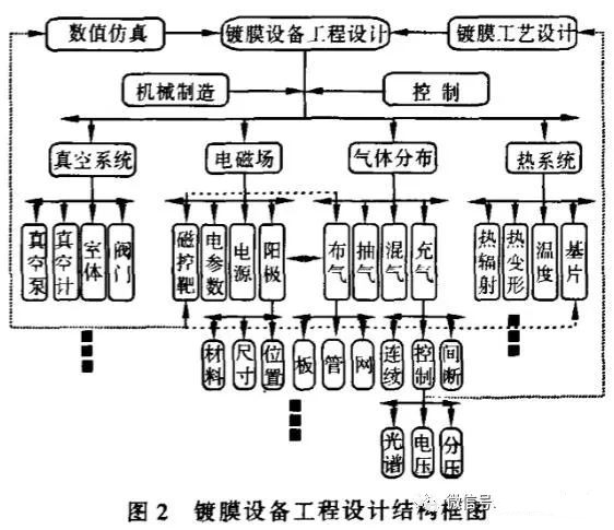 對(duì)于濺射鍍膜來(lái)說(shuō),可以從真空系統(tǒng),電磁場(chǎng),氣體分布,熱系統(tǒng)等幾個(gè)方面進(jìn)行沒(méi)計(jì),機(jī)械制造和控制貫穿整個(gè)工程設(shè)計(jì)過(guò)程,參照?qǐng)D2。