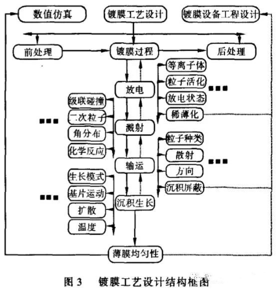 鍍膜設(shè)備的工程設(shè)計(jì)、鍍膜工藝的設(shè)計(jì)及二者的計(jì)算機(jī)數(shù)值仿真這三者之間是相輔相成的:鍍膜設(shè)備決定鍍膜工藝過(guò)程的實(shí)現(xiàn),鍍膜工藝促進(jìn)鍍膜設(shè)備的升級(jí),而高性能的計(jì)算機(jī)仿真設(shè)計(jì)給兩者的設(shè)計(jì)提供了強(qiáng)有力的支持。